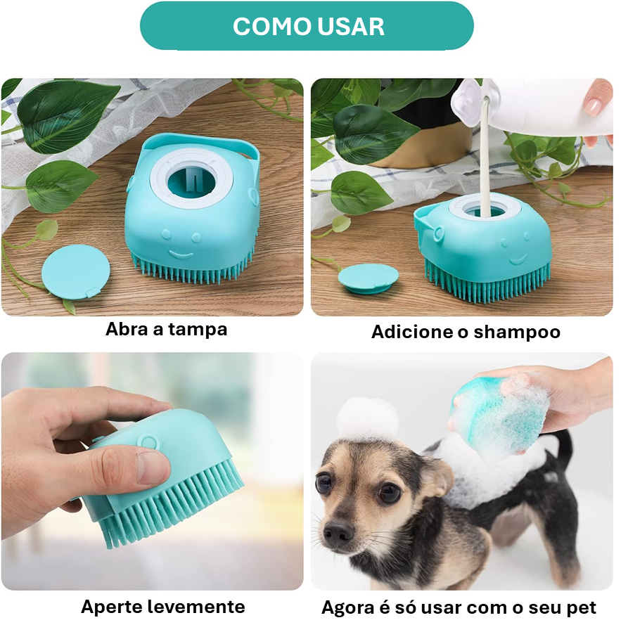 Escova e massageador para banho de cães, escova plástica para higiene pet, acessório para cuidados com pelos, escova para banho relaxante. Ideal para remover sujeiras e pelos soltos enquanto massageia suavemente, tornando o banho mais eficiente e prazeroso para o pet.